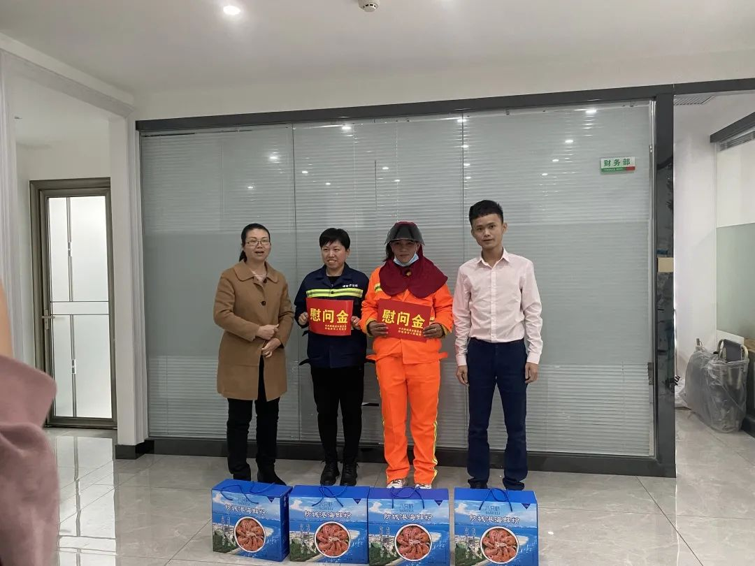 1月24日,防城港市總工會(huì)開(kāi)展節(jié)前慰問(wèn)活動(dòng),為國(guó)策環(huán)保防城港分公司一線環(huán)衛(wèi)人員送去了溫暖和關(guān)懷。