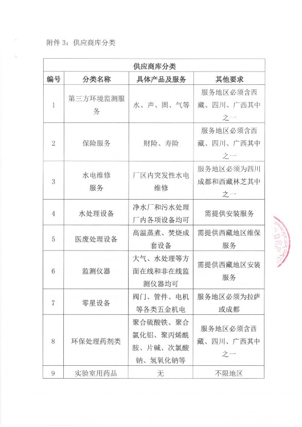 為規(guī)范西藏國策環(huán)??萍脊煞萦邢薰荆ㄒ韵潞喎Q國策環(huán)保或公司)采購行為,加強(qiáng)采購管理,維護(hù)公司采購當(dāng)事人的合法權(quán)益,更好地與廣大供應(yīng)商合作,依據(jù)公司采購管理、供應(yīng)商管理有關(guān)制度的規(guī)定,公司現(xiàn)征集采購供應(yīng)商入庫登記,以建立規(guī)范完整的供應(yīng)商信息庫。歡迎各企業(yè)(供應(yīng)商)踴躍入庫,現(xiàn)將有關(guān)事宜通知如下: