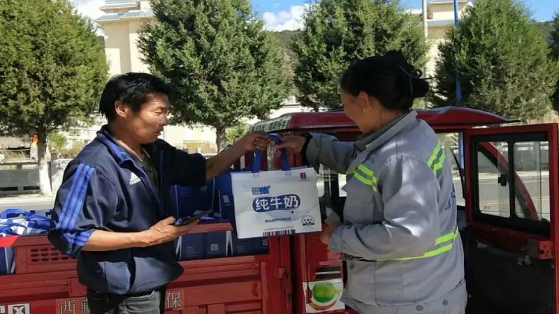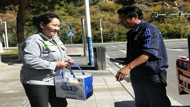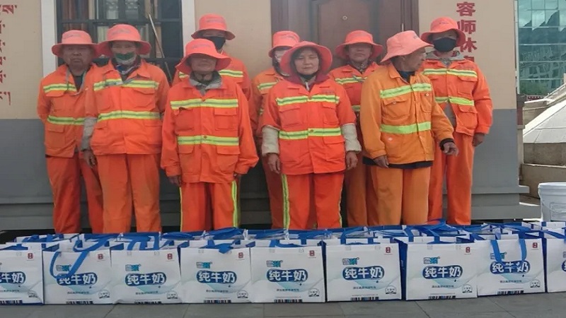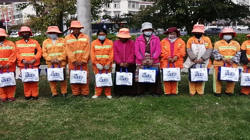 為感謝他們多年來的辛勤付出,國策環(huán)保林芝分公司相關(guān)人員向作業(yè)在一線的環(huán)衛(wèi)工人以每人80元的標(biāo)準(zhǔn),發(fā)放了當(dāng)?shù)靥禺a(chǎn)雪頓純牛奶、嘎瑪雞蛋、鹽等慰問品,共計(jì)274份。