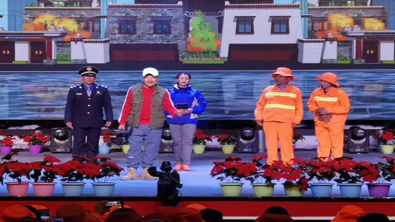 為慶祝“環(huán)衛(wèi)工人節(jié)”這一個(gè)平凡而偉大的節(jié)日,鼓舞全體環(huán)衛(wèi)工人的士氣,10月26日晚,由日喀則市委、市政府主辦,市城市管理和綜合執(zhí)法局、市文化局承辦的主題為“頌現(xiàn)代化新西藏 展環(huán)衛(wèi)工新風(fēng)采”第五屆環(huán)衛(wèi)工人節(jié)表彰大會暨文藝匯演在日喀則市職業(yè)技術(shù)學(xué)院舉行,國策環(huán)保日喀則分公司作為參與方積極參與了此次活動。
