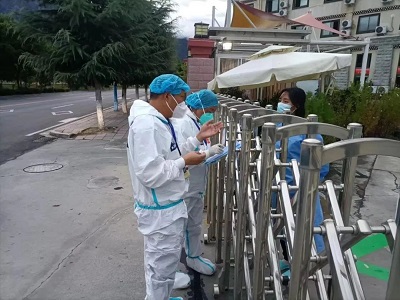 (國(guó)策環(huán)保林芝分公司工作人員對(duì)低風(fēng)險(xiǎn)區(qū)域進(jìn)行生活垃圾清運(yùn))