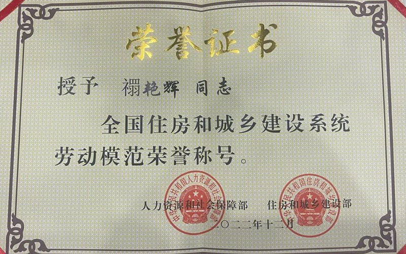 “全國(guó)住房和城鄉(xiāng)建設(shè)系統(tǒng)勞動(dòng)模范”